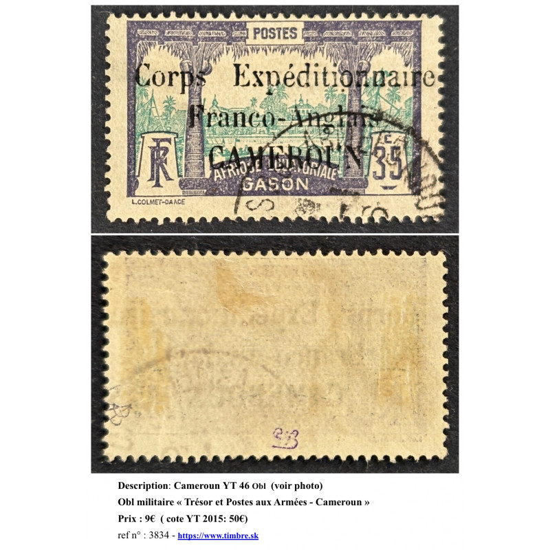 Descripton: Obl ''Tresor et Postes aux Armees/ Cameroun''