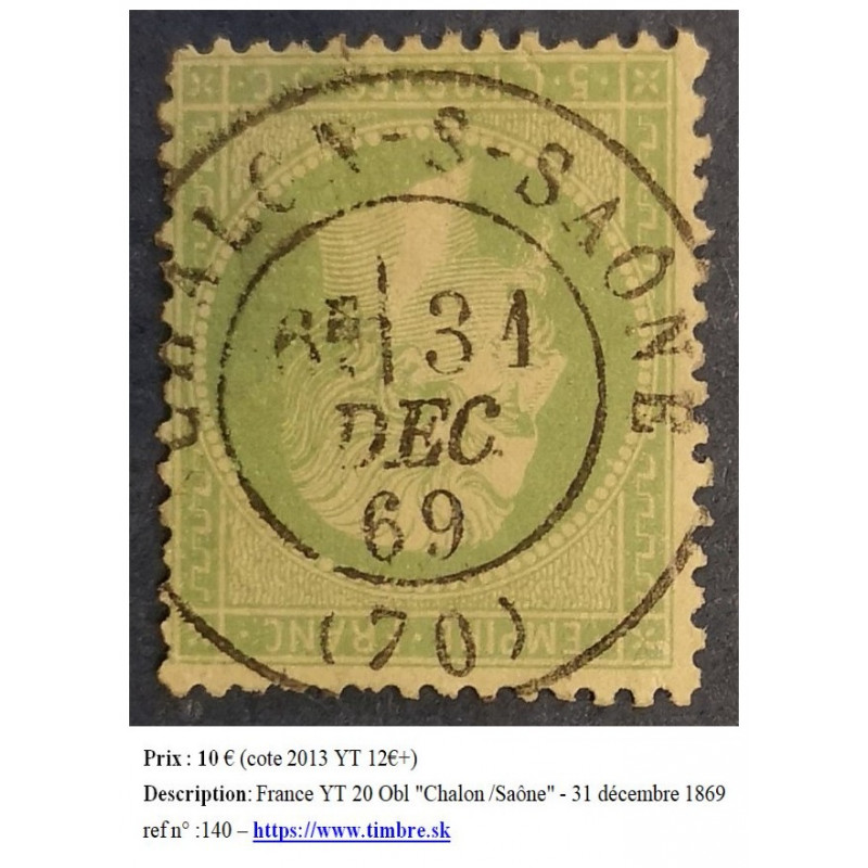 France (Francuzsko) YT 20 Obl cad "Chalon sur Saone" du 31 décembre 1869