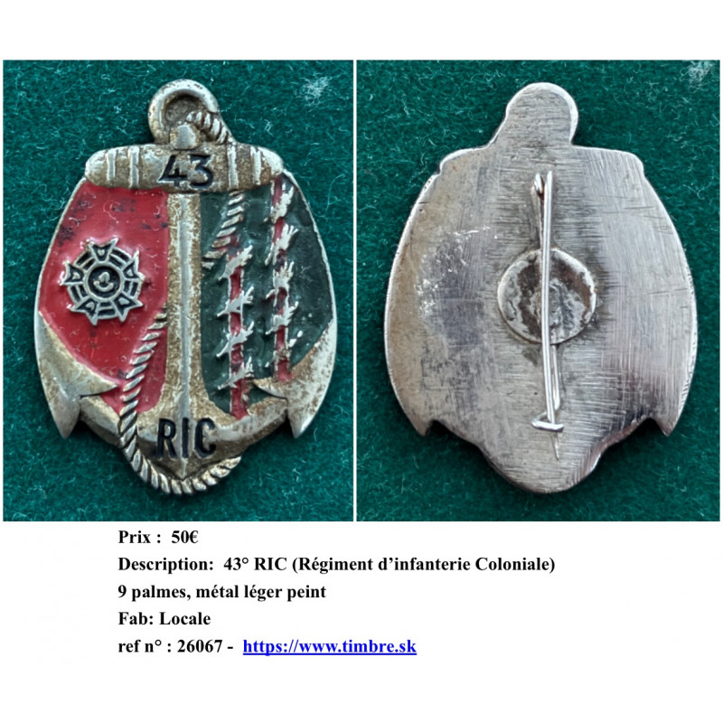 43° RIC (Régiment d'infanterie Coloniale) 9 palmes, métal léger peint