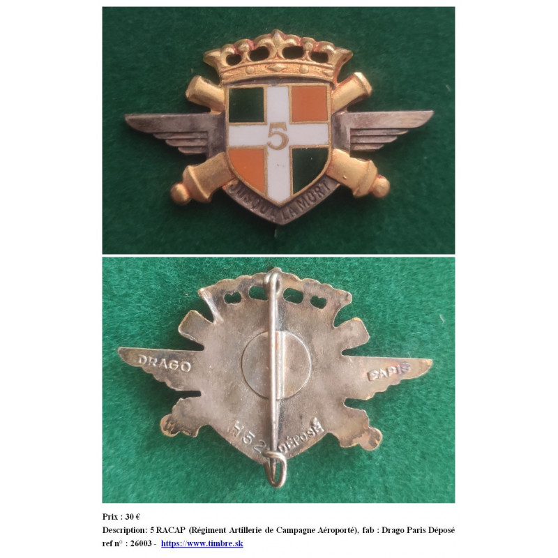 Parachutiste, 5 RACAP (Régiment Artillerie de Campagne Aéroporté), fab : Drago Paris Déposé