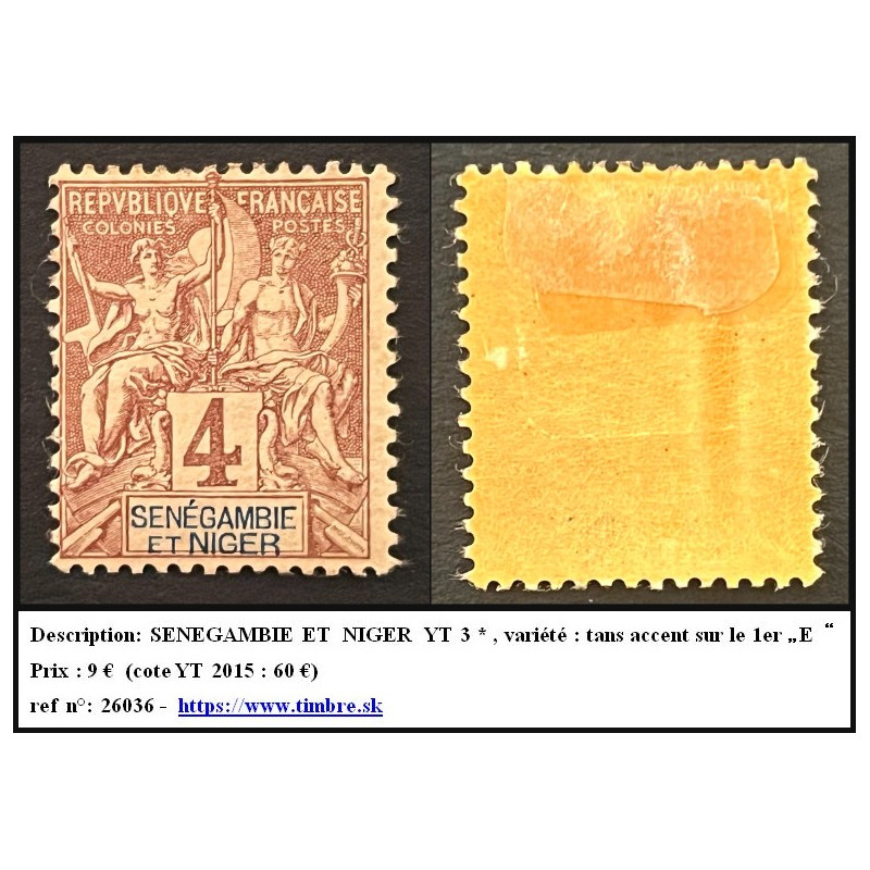 SENEGAMBIE ET NIGER YT 3 * , variété : tans accent sur le 1er „E“