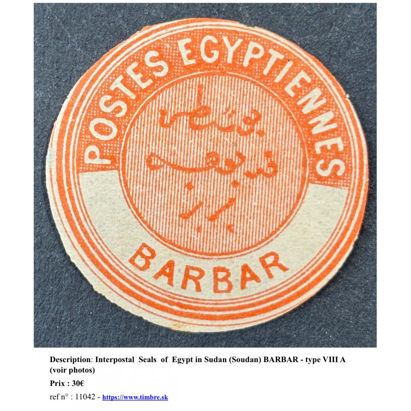Interpostal Seals of Egypt in Sudan (Soudan)BARBAR YT ; Mi ; Sg ; Autre: ; Etat: Descripton: Soudan, Type VIII A ID: 11042