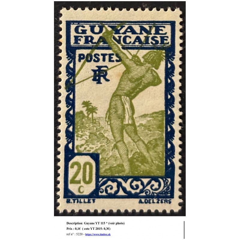 Guyane Francaise (French Guiana, Francuzska Guyana) YT 115; Mi ; Sg ; Autre: ; Etat: * Descripton: défaut point de rouille (hrza, browing spot) ID: 5220