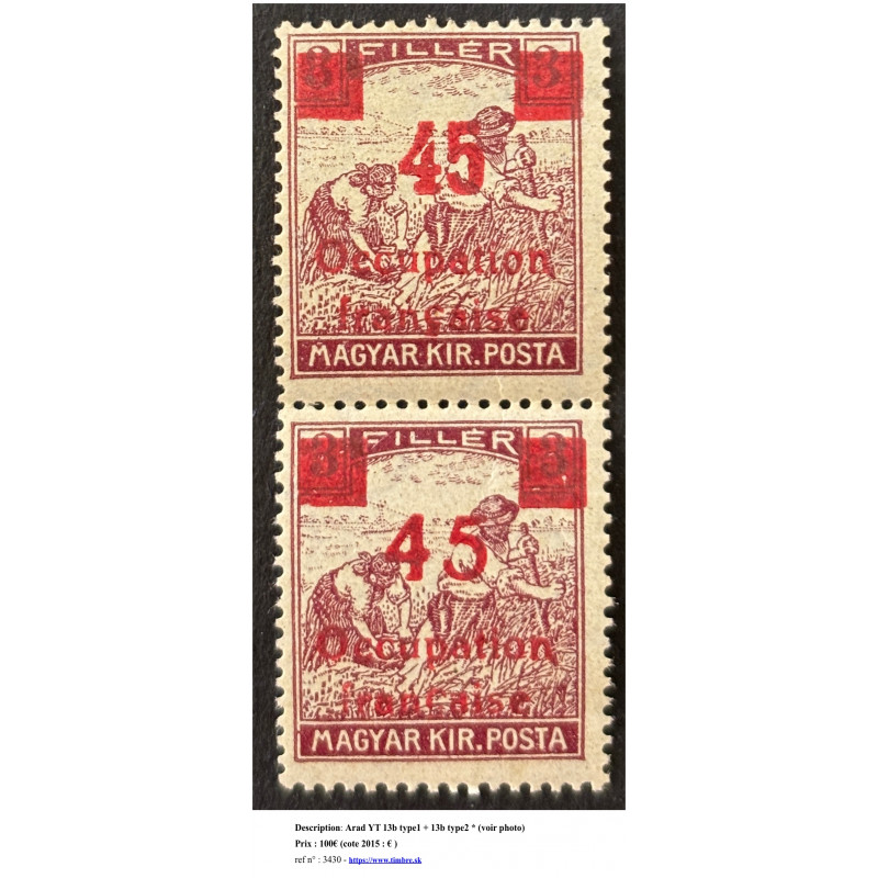Arad YT 13b type 1 et 13b type 2 se tenant *